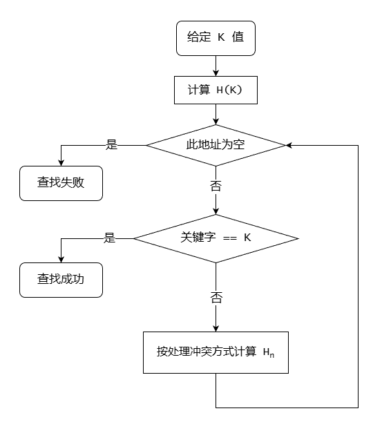Hi直至下面两种情况之一为止:r[Hi] == NULL(查找失败);r[Hi].key == K(查找成功)