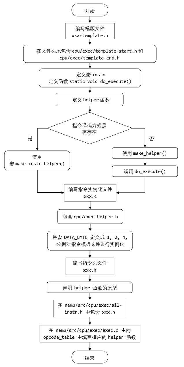 ③ 若一个helper函数只会在某些操作数长度中用到,可以在xxx-template.h中通过条件编译的功能来指定(可以参考nemu/src/cpu/exec/data-mov/xchg-template.h中的xchg_a2r指令类型)。